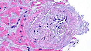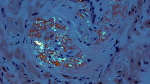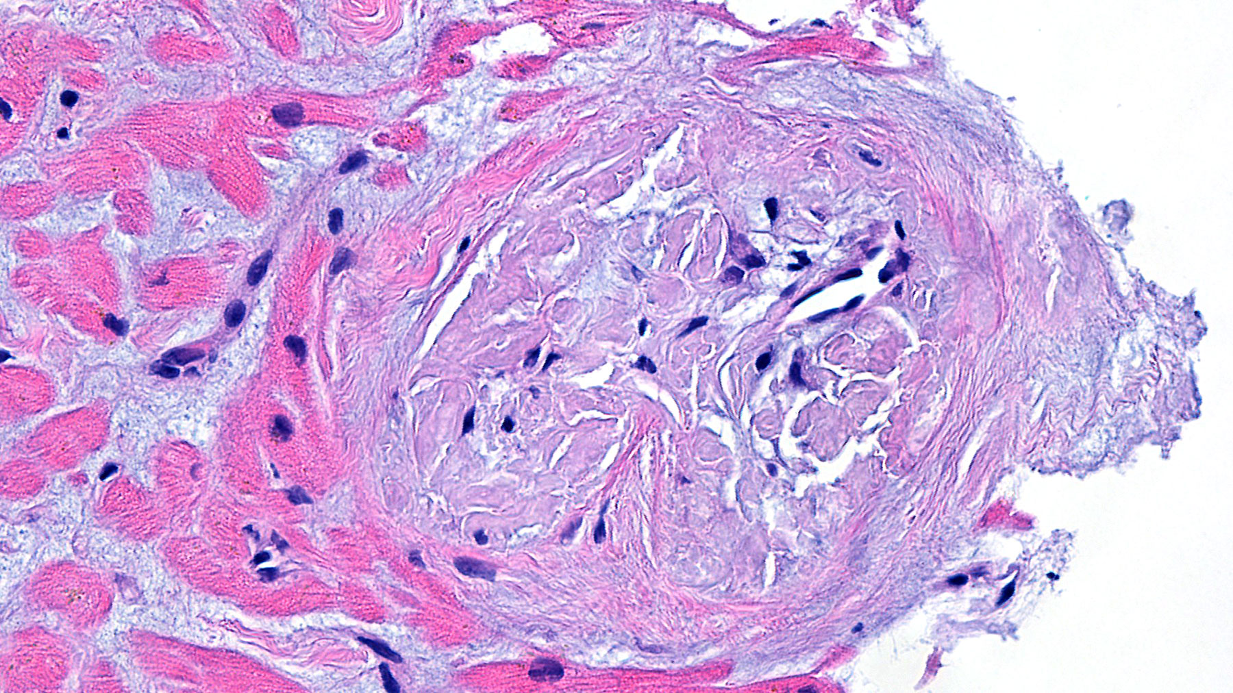 (Figure G) consistent in size and appearance with amyloid (n 5-15